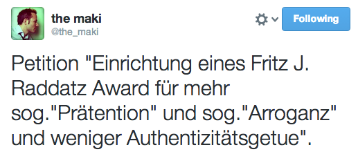 Oder geht es um die Zeit, die ich mir fürs Blog nehme? Die nehme ich mir nicht, die habe ich. Und wenn ich sie nicht habe, wird nicht gebloggt. Den inneren Druck, den ich mir früher gemacht habe („… und immer an die Leser denken“), habe ich schon längst abgelegt. Ich muss hier mal gar nix.